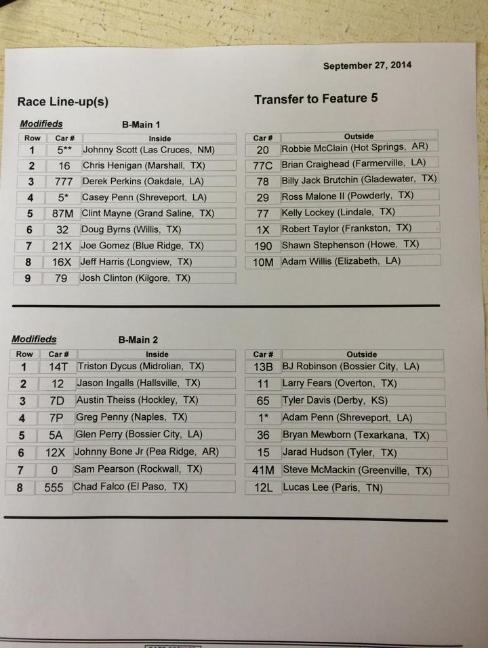 | #51 RODNEY WING, MERIDIAN, MS; THURSDAY NIGHT FEATURE WINNER AND POLE SITTER FOR FINALE. #21 CHRIS BROWN, CLEVELAND, TX: FRIDAY NIGHT MODIFIED FEATURE WINNER AND OUTSIDE FRONT ROW POLE SITTER FOR FINALE. |