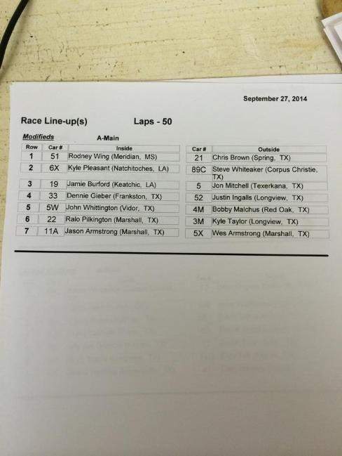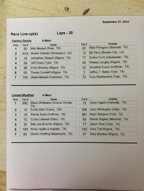 | NIGHT 1 LIMITED MODIFIED WINNER - Steven Whiteaker Jr from Corpus Christi TX... he will start on the pole for the $3,000 to win feature on SAT. 9/27! |