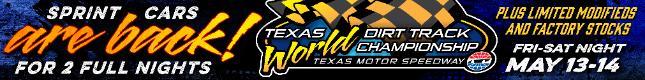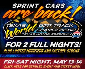 | Additional event resources: For complete event brochure, uploaded 3/14/16, click here. Add'l Details, Tickets, click here. TMS Facility Map, click here. To visit TMS's site, click here. Fuel, Parts & Hoosier Tire supplier: Smiley's Racing Race Director, Cameron Branch: 817-528-3571 Special Event Marketing Services by DarinShort.com |
